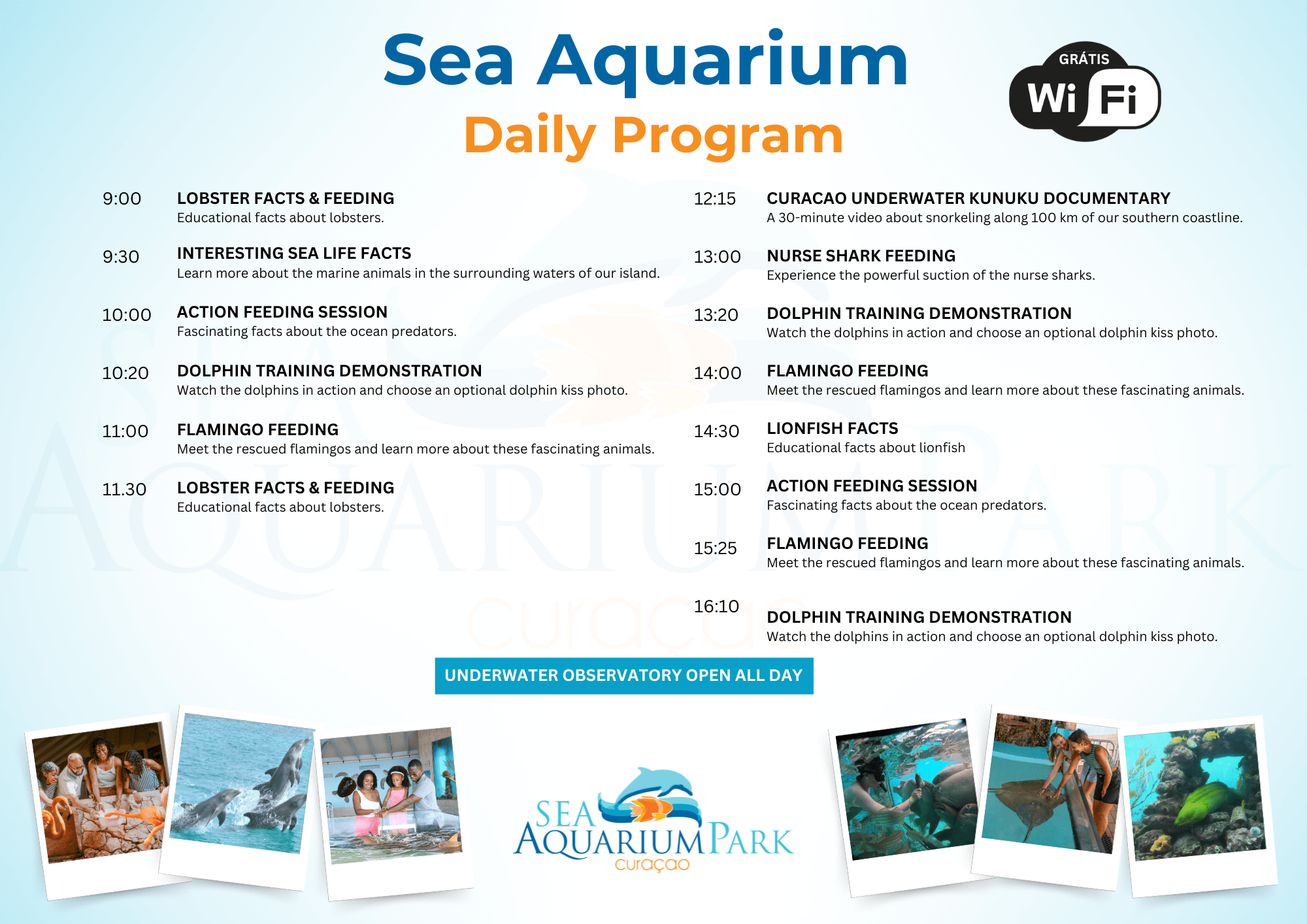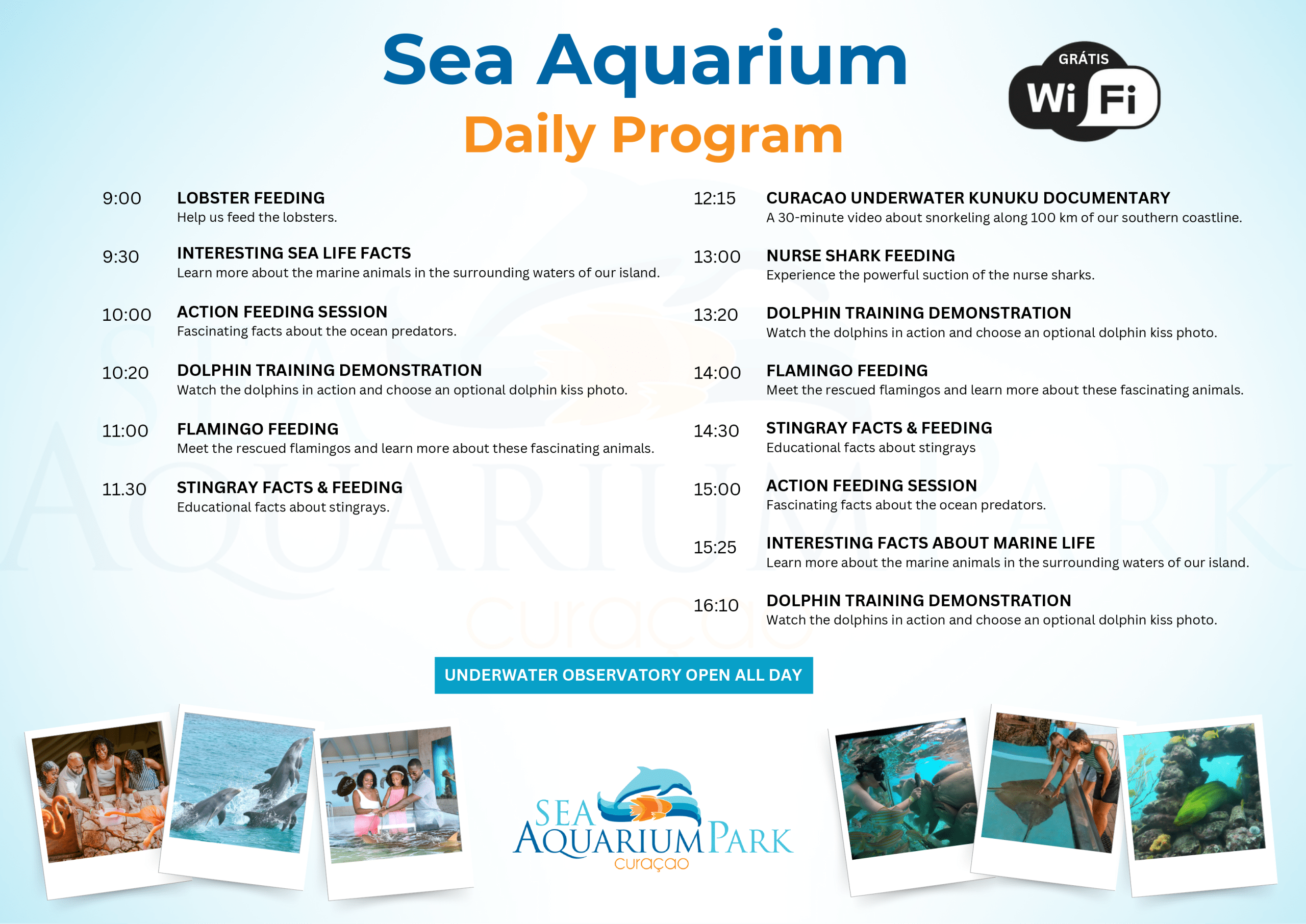 At Curaçao Sea Aquarium we are dedicated to the well-being of Curaçao’s marine ecosystem. That is why we see ourselves primarily as a center for knowledge at which we teach facts about aquatic life in a fun way for the entire family. This all while interacting with a host of members of Curaçao’s marine life in natural surroundings. Come enjoy this experience today!